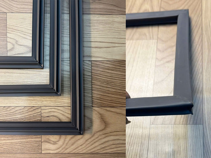 - Gài ron theo chu vi khung cửa, ấn nhẹ cho đều tay đến khi ron bám chặt vào rãnh